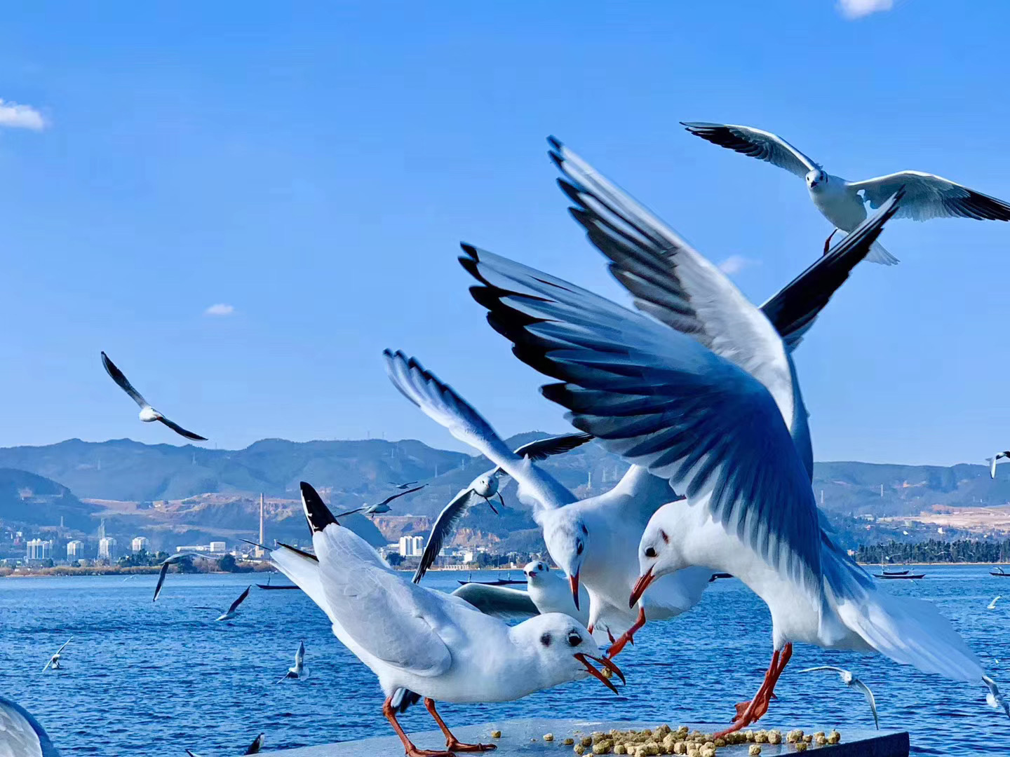 昆明滇池春光無限 海鷗群飛 滇池環(huán)境保護初見成效 昆明滇池會展中心成新寵