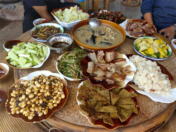 農家特色飯菜常供常新,多種地道的原生態綠色食品以及各類農家生態蔬菜為原料的特色菜,以土雞、老臘肉、火腿、山豬肉、土黃牛、黑山羊等多種地道的原生態綠色食品以及各類農家生態蔬菜為原料的特色菜。獨具法脿風味的佳肴供您大快朵頤,還有野生蜂蜜、農村臘肉、核桃、板栗、中藥材、彝家小灶酒多種鄉村土特產,溫暖靜候。