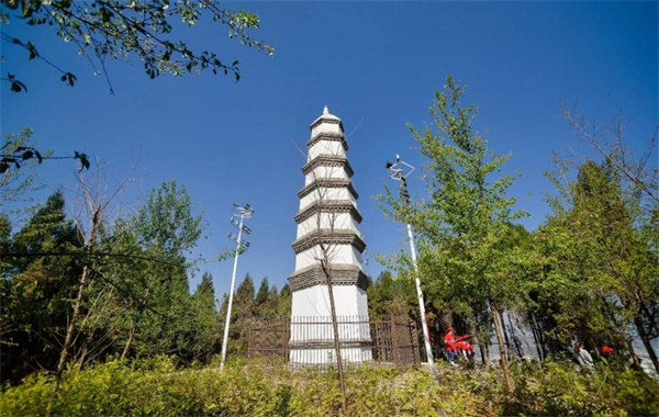 白塔位于大姚縣城西500米的寶筏山文筆峰頂,據道光《云南通志》記載:“白塔建于唐時,西域番僧所造。”整座塔高18.4米,由須彌座塔基、八角形塔身和紡錘體塔頂三部分組成,頂部呈圓椎形,塔身敷粉,在藍天白云下,晶瑩如雪。