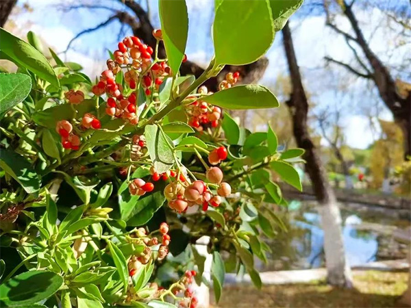 對(duì)了,公園雖然叫“大觀樓”,其中還有一座“小觀樓”,就在那附近轉(zhuǎn)上一轉(zhuǎn)的功夫,也會(huì)有驚喜的觸動(dòng):本該在十月前后就該熟過(guò)落地的冬青衛(wèi)矛,依舊在暖冬里結(jié)著紅烈的果實(shí)。