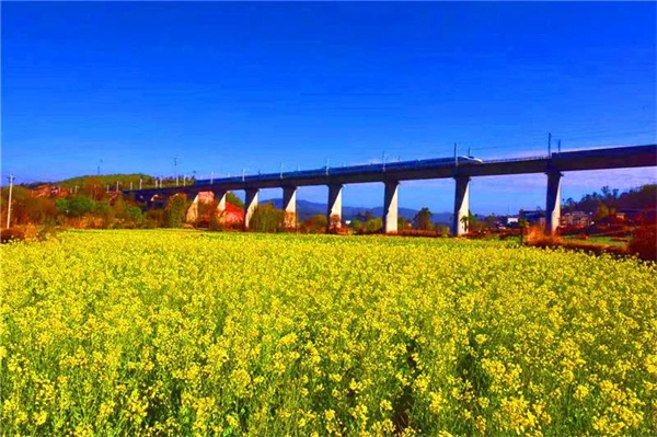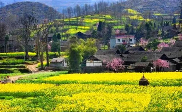 楚雄子午鎮的油菜花,已于近日盛開,花田里蝶飛蜂鳴,花田旁農人忙碌,白墻黛瓦掩映花間,形成一幅鄉村水墨山水畫卷。你可以去尋春色了,去感受“兒童急走追黃蝶,飛入菜花無處尋”的意境。