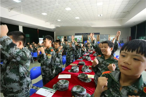 下午入營儀式,授旗,入營宣誓,認識教官,認識老師。選拔班干部,宣讀營地紀律和安全條例(安全第一),帶領大家熟悉營地。教官帶領整理內務:學習物品整理和擺放;疊被子,學習怎么把它疊成豆腐塊,自己動手,豐衣足食。安全意識,軍人品質、生活習慣和自理能力;