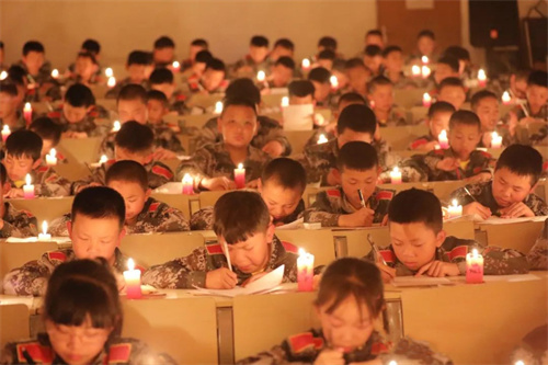 晚上每天寫一句話:學習的目的是開啟智慧,智慧源自思考,別小看小小的一句話,這才是你智慧開啟的關鍵,說不定這一句話會成為警世名言呢!學唱軍歌,鼓舞士氣,輕松愉悅。每晚清點人數,22:00軍號一響,準時熄燈就寢,第一次睡到營地,要好好睡喲,不要太興奮呦。時間觀念、獨立思考、增加孩子集體榮譽感和凝聚力。