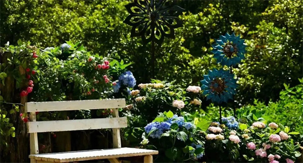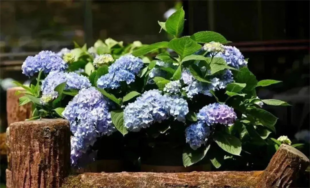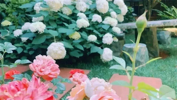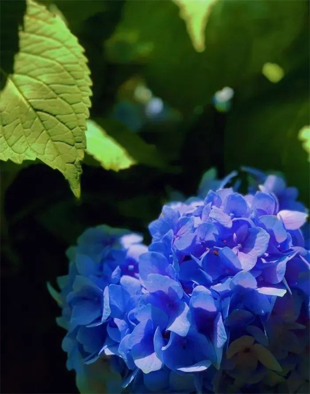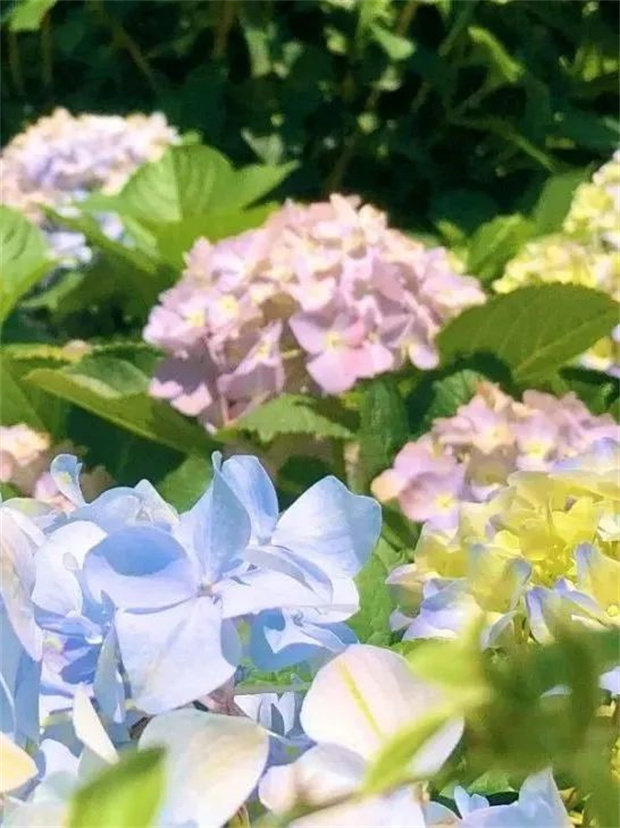 陽光斜照在樹葉上,投下的影子為繡球花打了一把傘。層層疊疊的繡球花開在曲徑通幽的小路旁,引著人進(jìn)入一個又一個多彩夢境。