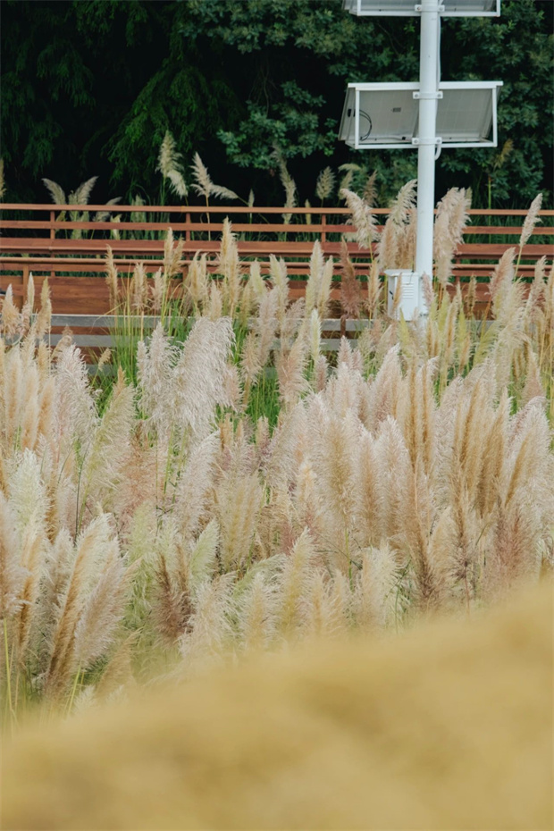 沿橋而行,草之橋步道邊比人還高的葦稈密密麻麻,織成一片柔軟的屏障,風過時,葦浪層層疊疊推向遠方,沙沙聲裹