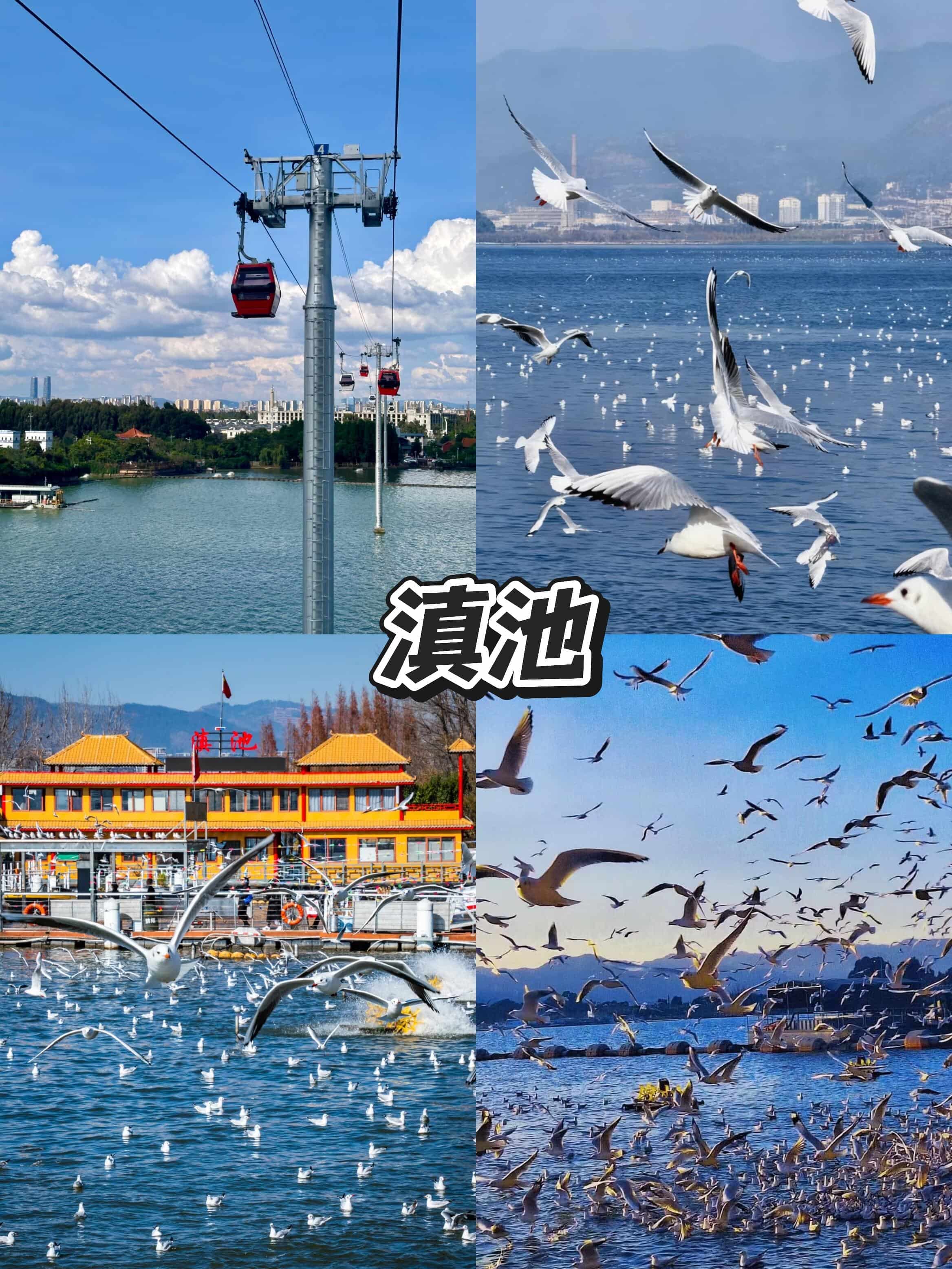 滇池海埂大壩:西伯利亞紅嘴鷗每年 12月 - 3 月必來!站在湖邊伸手,海鷗會叼走你手里的面包碎。