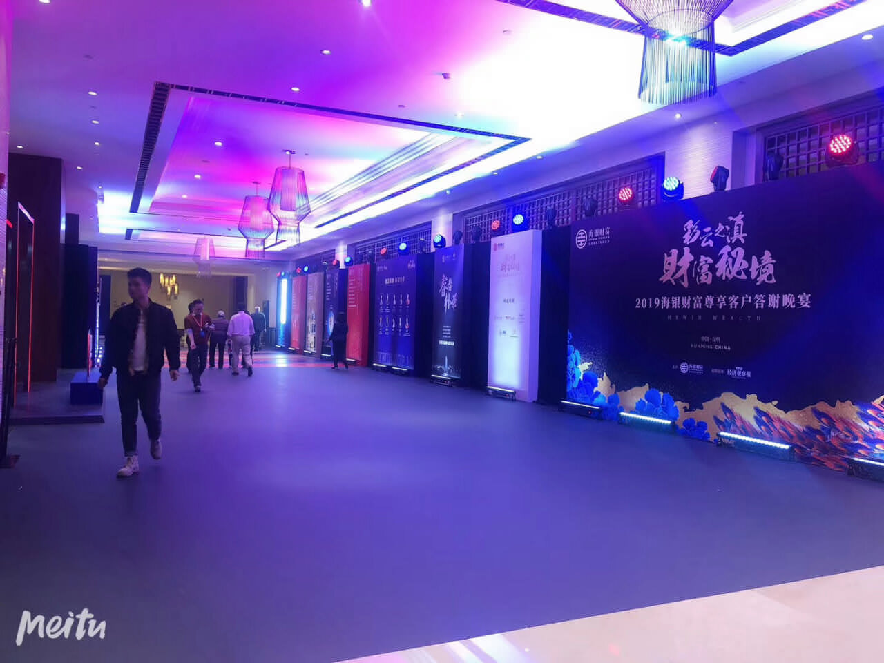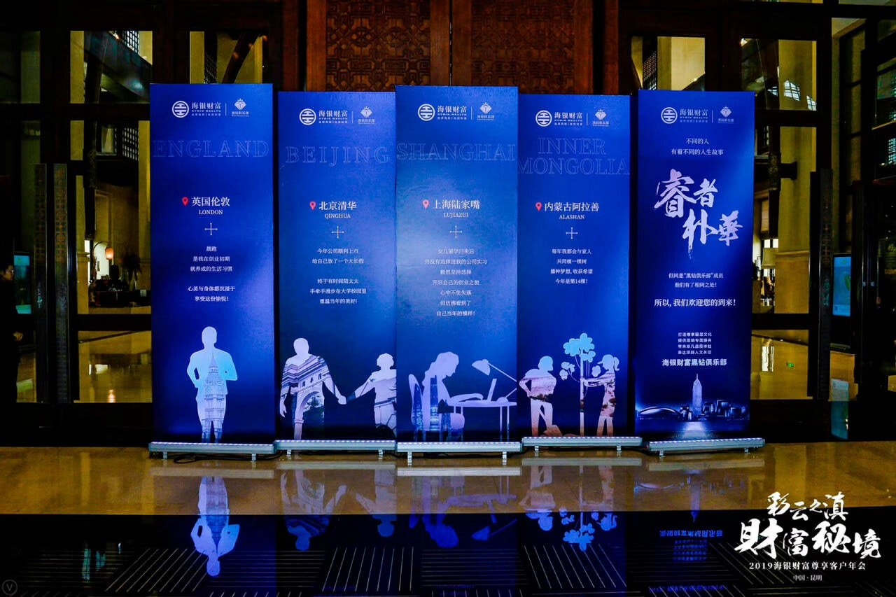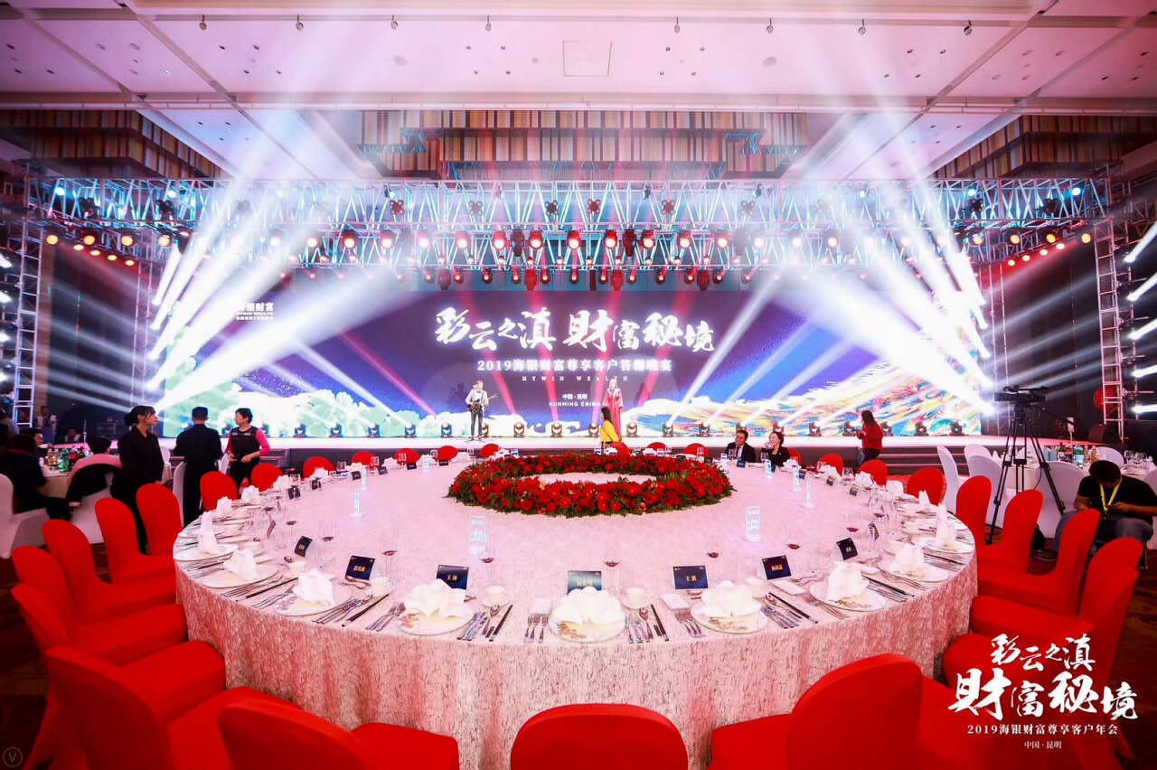 2019年海銀財(cái)富尊享客戶年會(huì)及答謝晚宴在滇池湖畔春城昆明召開;天行提供會(huì)議會(huì)展、獎(jiǎng)勵(lì)旅游、市場(chǎng)活動(dòng)管理及包括AV搭建、物料制作、活動(dòng)場(chǎng)地、演藝、拓展、勞務(wù)人員等專項(xiàng)資源管理在內(nèi)的專業(yè)會(huì)展服務(wù)。