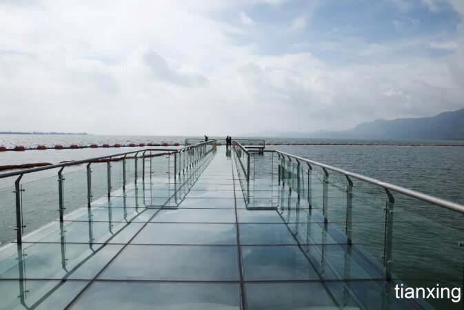 去年,海埂公園多了一個新的景點(diǎn)--玻璃棧道。這個“新”棧道位于進(jìn)公園左側(cè),實(shí)際是幾十年前一個很有歷史的長堤改造而成,有點(diǎn)年紀(jì)的昆明人對這個位置的長堤都記憶深刻。長有百余米,寬還是老樣子寬,上世紀(jì)七八十年代,昆明人就喜歡從上面入水游泳,在兩長堤間來回游泳。走在玻璃棧道上天水一色,透過玻璃能看到腳下的滇池水游客走在上面,遠(yuǎn)處是西山水面吹來的風(fēng),將衣擺輕輕掀起這樣的場景拍下照片一定太美了。