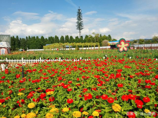盛夏時節,在昆明撈魚河濕地公園,最耀眼的是五彩繽紛的百日菊,花開成海的景致令人著迷。