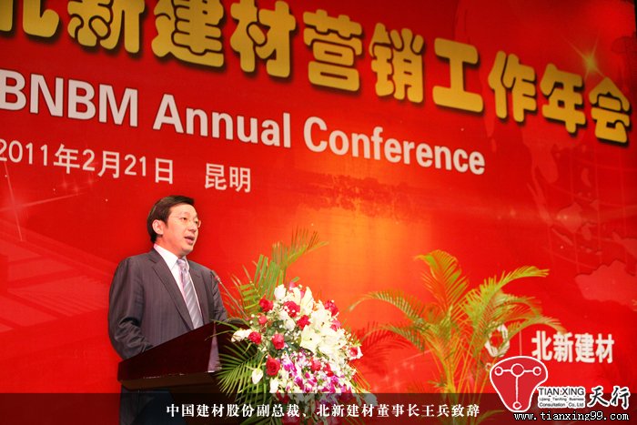 2月21日,北新建材2011年營銷工作年會在昆明隆重舉行,中國建材集團董事兼中國建材股份有限公司總裁曹江林出席大會并做重要講話,《中國建材報》社社長陳才來、《中國建設(shè)報》社副社長翟建、《中華建筑報》社總編鄧千等應(yīng)邀出席大會,北新建材董事長王兵致歡迎辭并做營銷工作報告。
