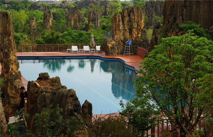 石林獨特的喀斯特地貌,不僅孕育了世界聞名的石林風景區。亂石之中,更孕育了一座喀斯特風景相伴的溫泉度假好去處——杏林大觀園石海溫泉。 錯落分布于石峰之間的泡池,洼處成池,高處成景,溫泉水呈弱堿性,富含多種礦物質和微量元素,甚至達到國家醫療礦泉水水質標準,因此石海溫泉也被認定為“弱堿性的氟醫療熱泉水”。以中醫藥文化為主題的杏林大觀園,其中的石海溫泉自然個個養生,功效良多。溫泉區內,還有專為兒童打造的溫泉游樂區。泡溫泉之余,還可以體驗豐富多樣、順應時節的瓜果采摘。夜晚,擇一間木屋酒店入住,完美的一天就此得以圓滿。