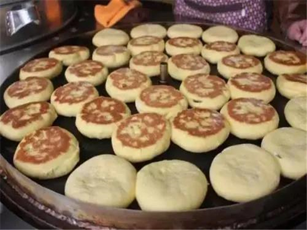 官渡粑粑是一種極為普通的面食,以芝麻、花生、核桃等磨細果仁與白糖等混合為餡烘制而成一圓形粑粑,松軟香甜,綿柔勁道,十分可口。