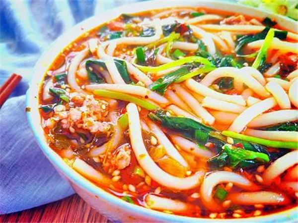 米線是云南的特色小吃。米線是經(jīng)過用大米發(fā)酵、磨漿、澄濾、蒸粉、壓制、漂洗等工序制作而成的。云南人愛吃米線,一日三餐幾乎都有米線。
