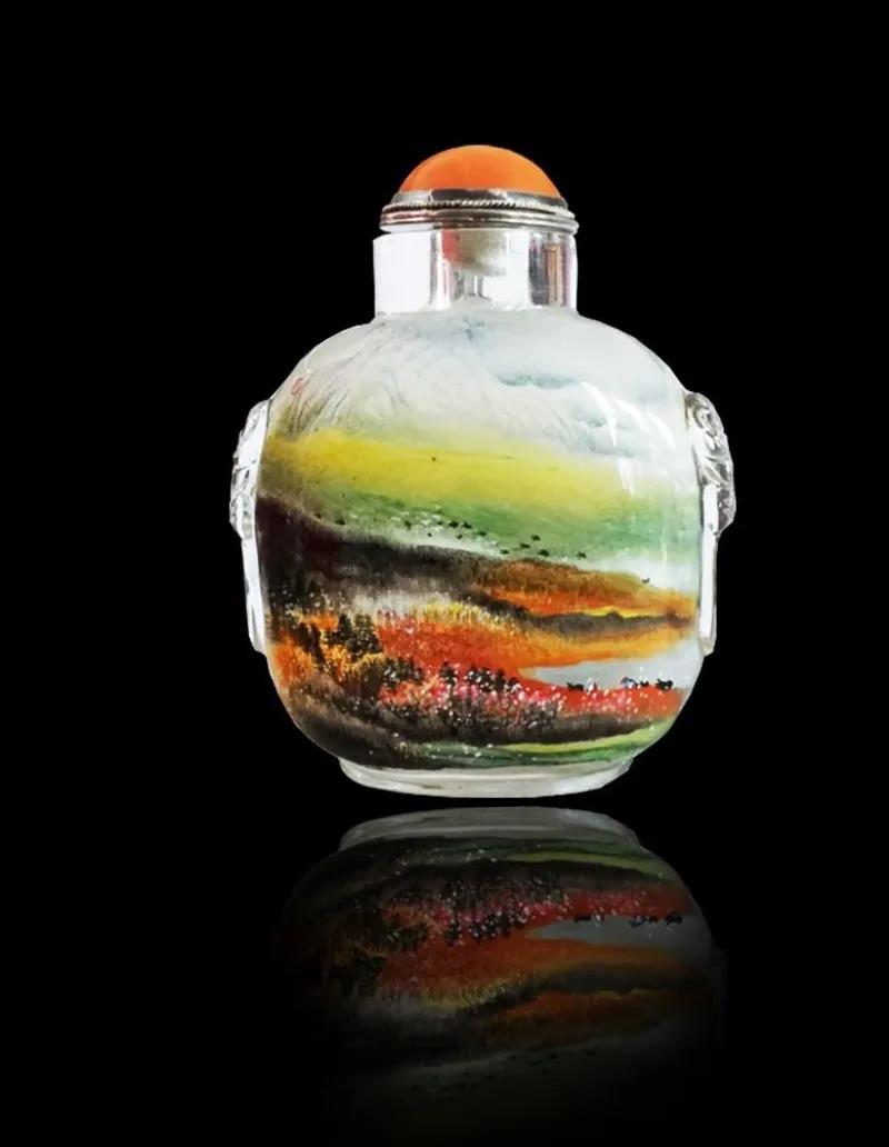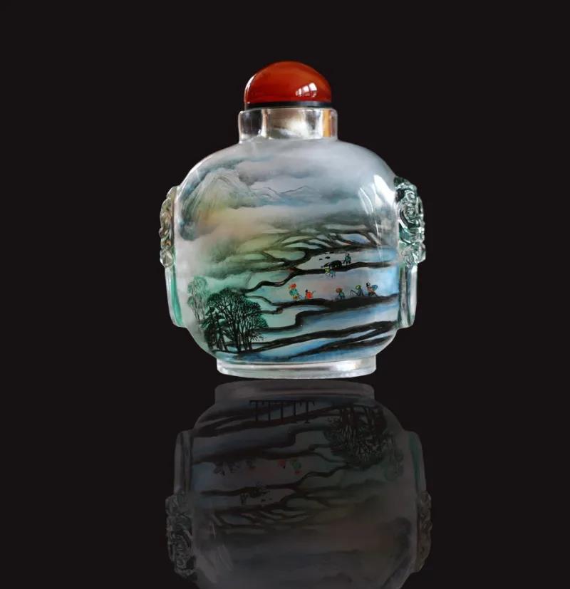 內畫出現于清代,是我國特有的傳統工藝,素以“寸幅之地具千里之勢”著稱,起源于畫鼻煙壺,它是以特制的細筆,伸入玻璃、水晶、琥珀等材質的壺內反向作畫?,F代內畫技藝有京、冀、魯、粵、秦等流派。
