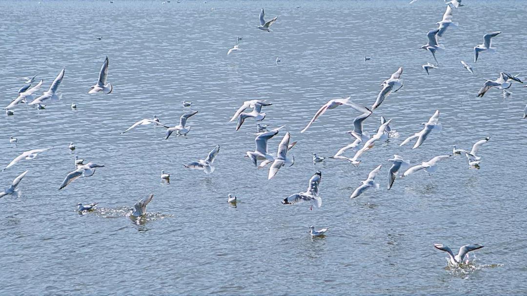 人還未到,就看到漫天盤旋的紅嘴鷗。