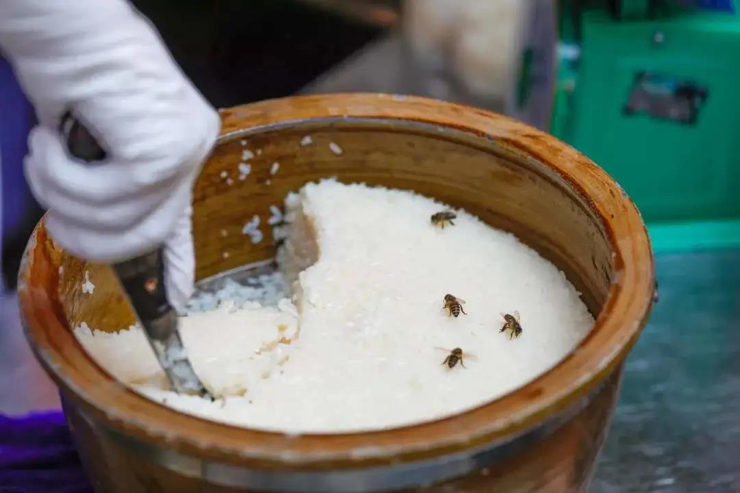 云南的甜白酒裝在大缸里出售,潔白敦實,和外地質地稀薄的醪糟不同,引來無數蜜蜂光臨是常有的事。