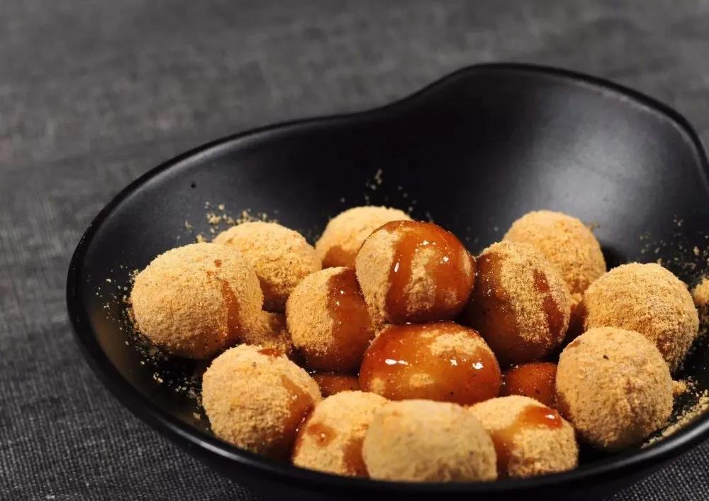 豆面湯圓的制作方法很簡單,將炒熟后醇香的黃豆磨成細面,再把煮好的湯圓扔進黃豆面中滾一滾,澆上紅糖汁便大功告成。