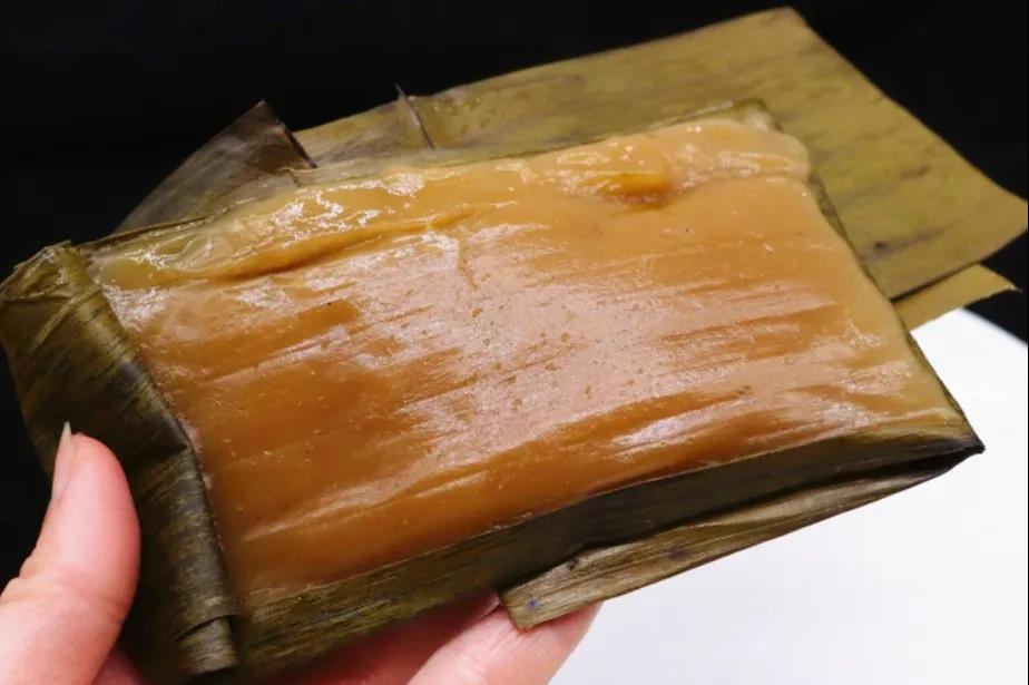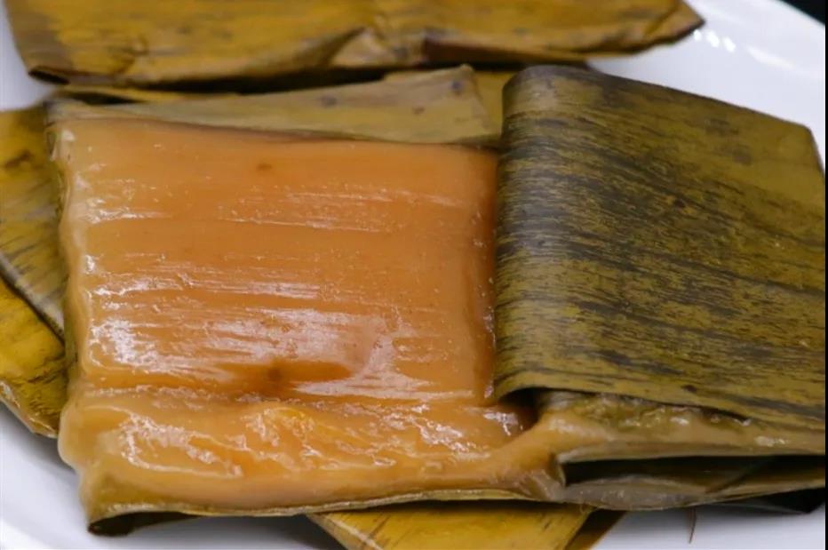 將上好的糯米磨成粉,加入紅糖揉成面團,然后用新鮮的芭蕉葉包裹,蓋上蒸籠蒸熟。潑水粑粑既有糯米的米香,又有芭蕉葉的清香,綿軟而富有彈性,好吃不膩!