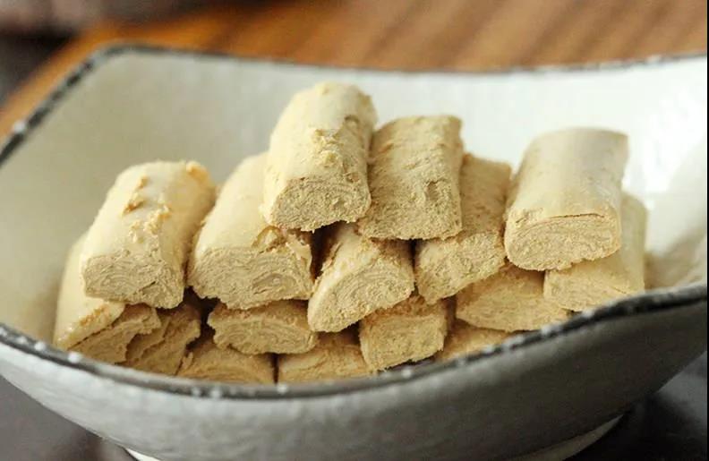 豆末糖豆香濃郁、酥松可口,"香、甜、酥、脆,入口無渣”是其特點。用當地傳統生產方法,糖的酥層可達到18層,酥層越多,產品就越酥!