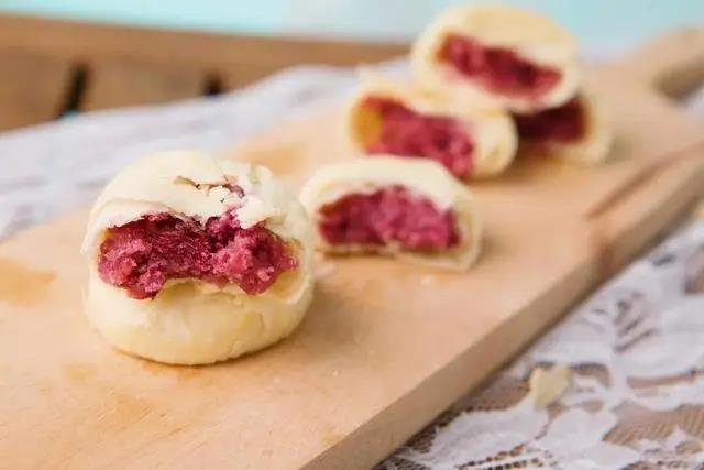 現烤現發的鮮花餅每層酥皮薄如蟬翼,還有清香撲鼻、軟糯香甜的餡兒,一口咬下去,片片玫瑰花瓣在酥餅中若隱若現,真可謂看得見花瓣,聞得到花香。
