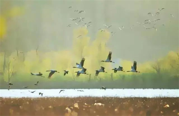 秋天有仙鶴滿載思念而歸的光影畫卷